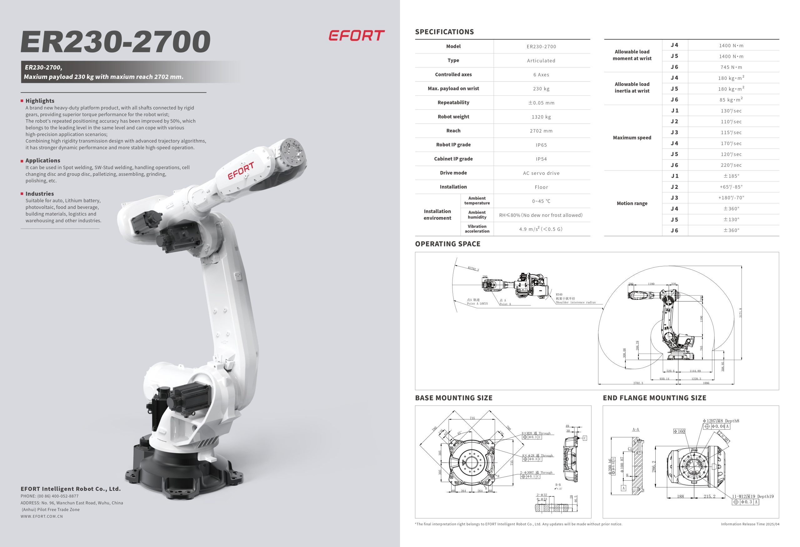 ER230-2700 Robô de Manipulação EFORT