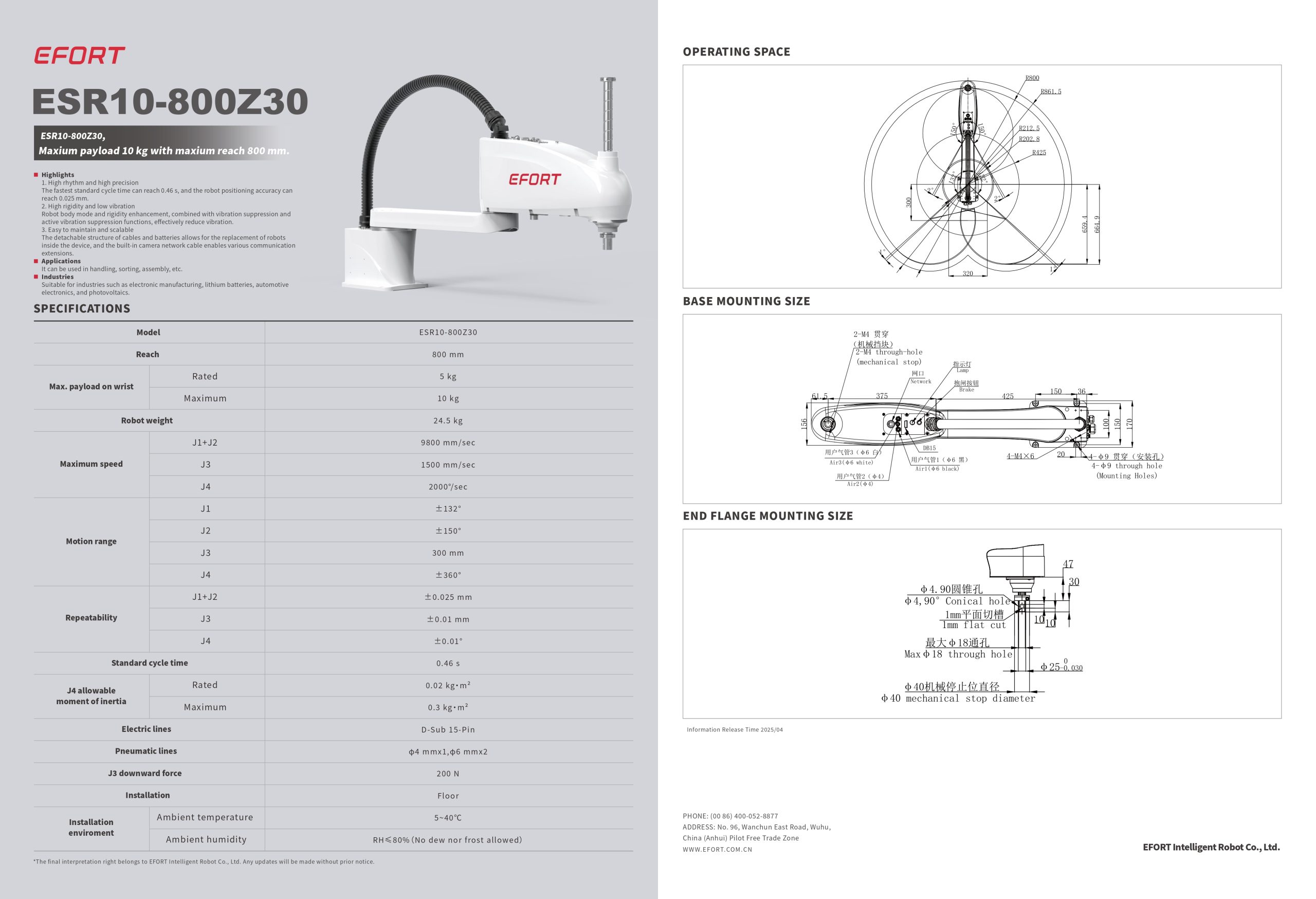 ESR10-800Z30 Robô Scara EFORT
